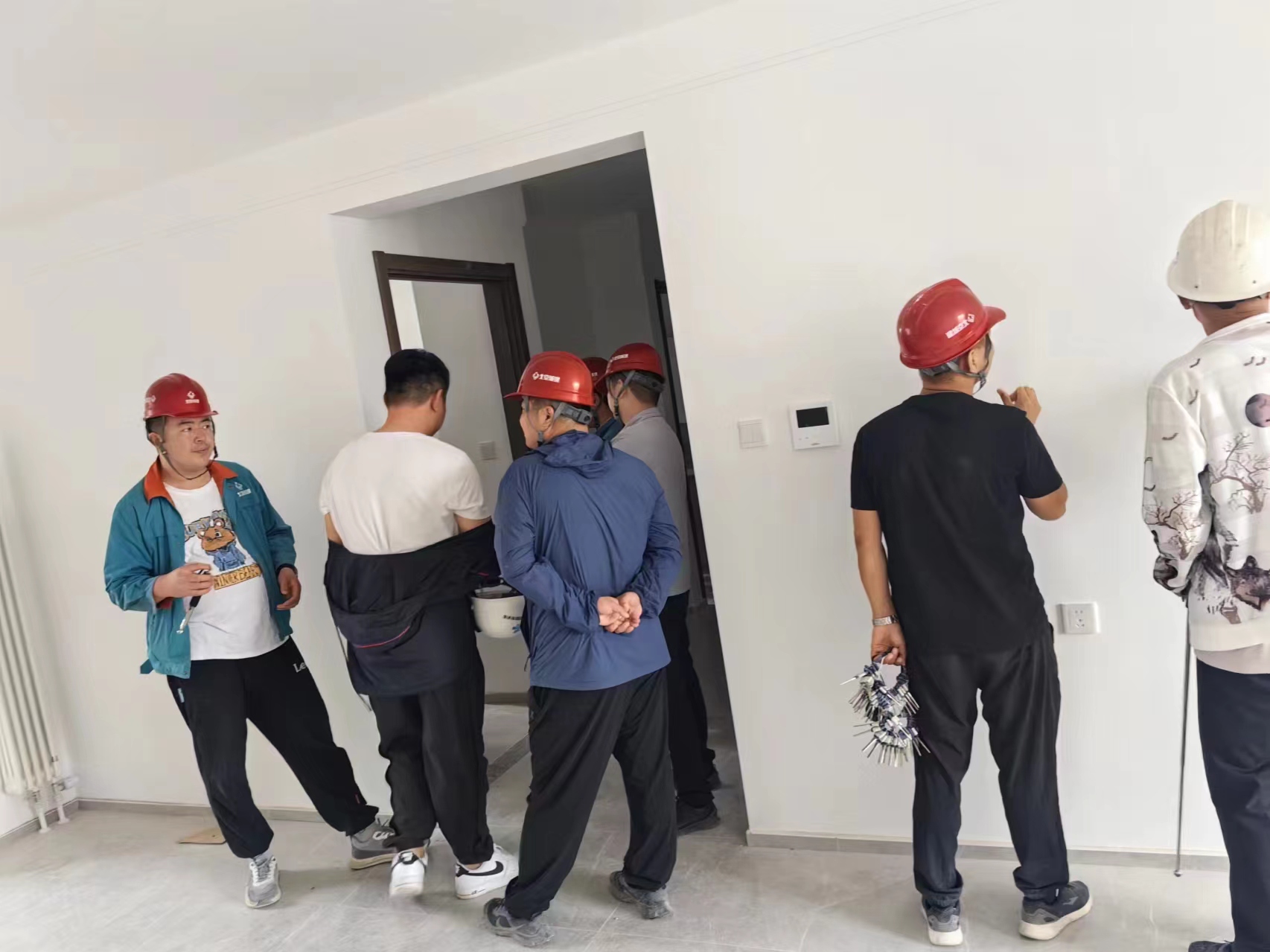 經(jīng)過昌平沙河項(xiàng)目部全體人員和公司人員的努力和付出,沙河項(xiàng)目取得了階段性的成果,今天由總包,監(jiān)理,甲方共同組織對(duì)我公司承接的三區(qū)7號(hào)樓進(jìn)行首次分戶驗(yàn)收和提出相應(yīng)的驗(yàn)收標(biāo)準(zhǔn)。