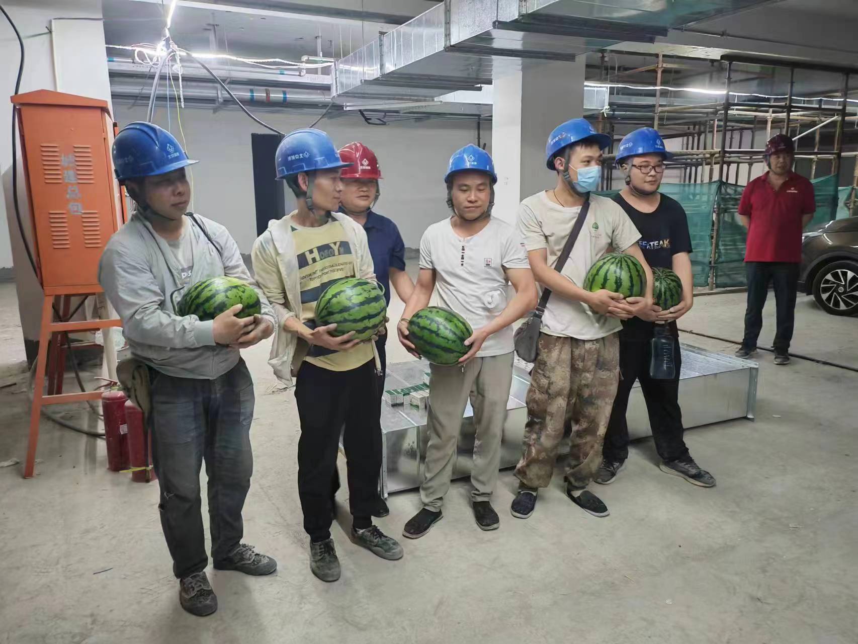 “送清涼”活動(dòng)是公司在夏季高溫期間給項(xiàng)目員工的福利。這看似細(xì)微的舉動(dòng),恰似夏日里的陣陣清風(fēng),沁人心脾,讓奮戰(zhàn)在高溫環(huán)境中的一線員工感受到公司確實(shí)把員工的健康和安全放在了心上。瓜香彌漫在整個(gè)項(xiàng)目,讓這個(gè)夏天不再炎熱。